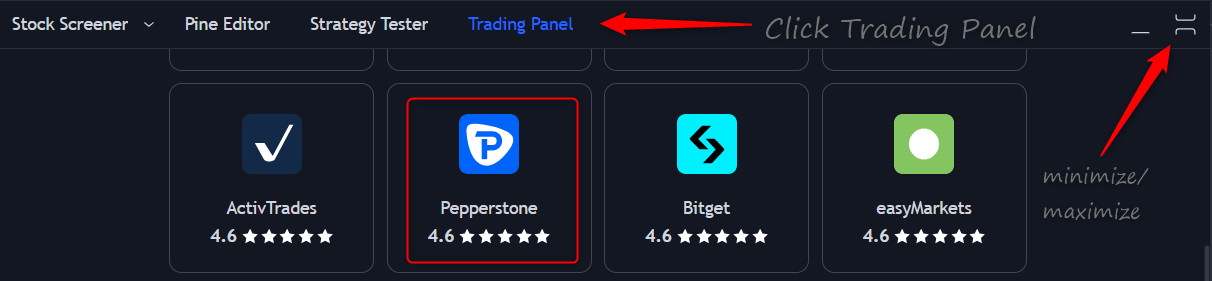 - Go to your Trading Panel section. If you can't see it, you may need to adjust the size of your chart. There's an expand icon to maximize the page.